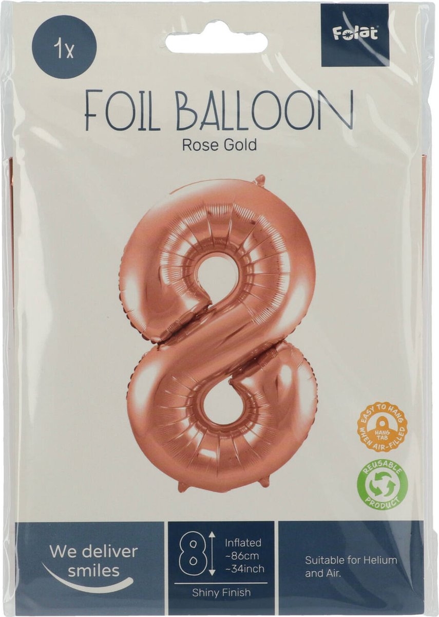 Rosé Goudkleurige Cijferballon cijfer 8 – 86cm.